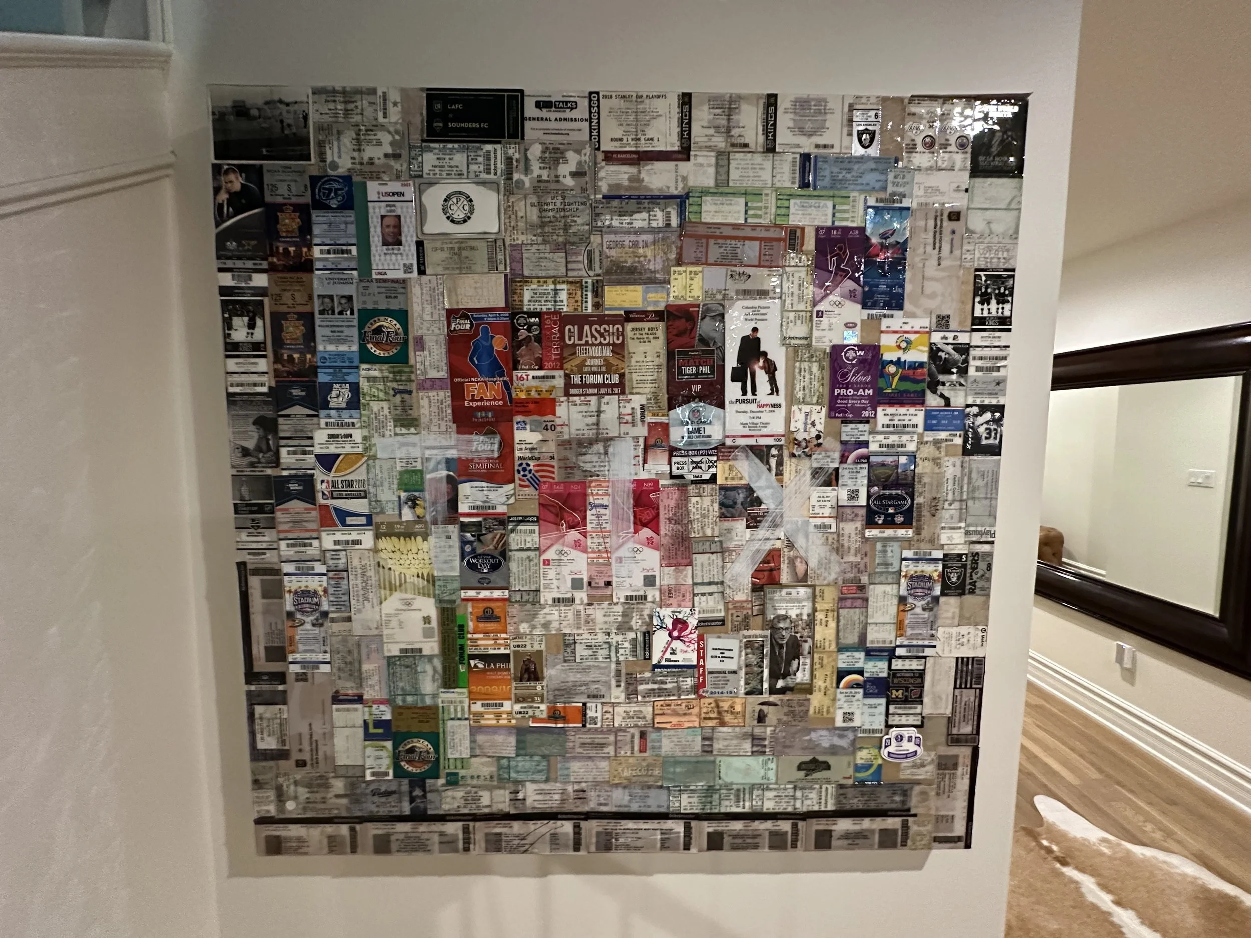Recently, I have worked with tickets and restaurants to give a new life to existing materials. The way I work is we will discuss your project and I will work to bring your idea to life. Maybe you want to repurpose your sports tickets into art, have a special occasion coming up, create a collage of your dog, looking for a new design for your restaurant, or store. Whatever it is, I can work with you to get a result you are happy with. Taking commissions for art projects, by MEG.